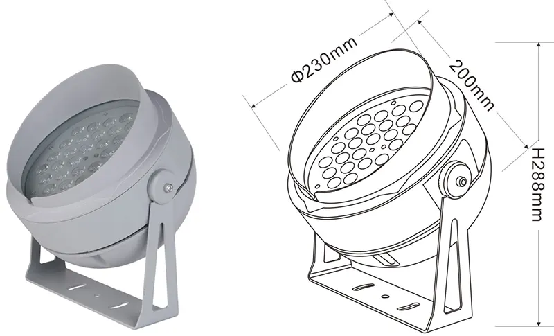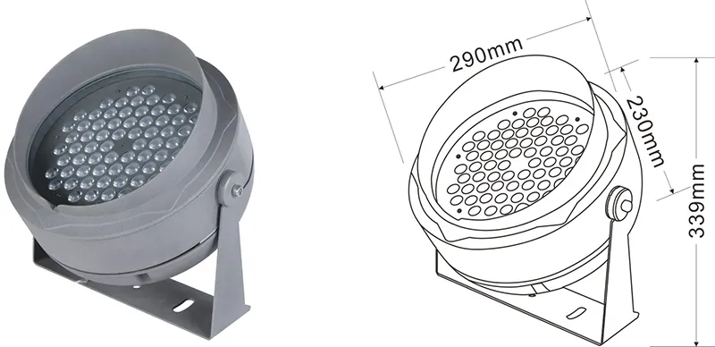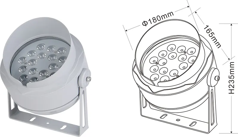 | எல்.ஈ.டி ஃப்ளட்லைட் | CON-TGD09-1 | Φ95*90*H150 மிமீ | 5*2W | பொருள்: அலுமினியம்+மென்மையான கண்ணாடி அடைப்புக்குறி வகை: சரிசெய்யக்கூடியது ஐபி: ஐபி 67 வண்ண வெப்பநிலை விருப்பமானது: 3000K/4000K/6500K RGB / DMX512 RGBW / DMX512 வழக்கமான சாம்பல், கட்டிட முகப்பில் வண்ணத்துடன் பொருந்தக்கூடியது |